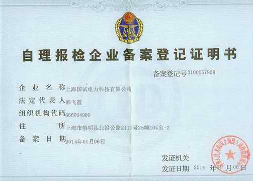 | 持证单位: 上海国试电力科技有限公司 |
