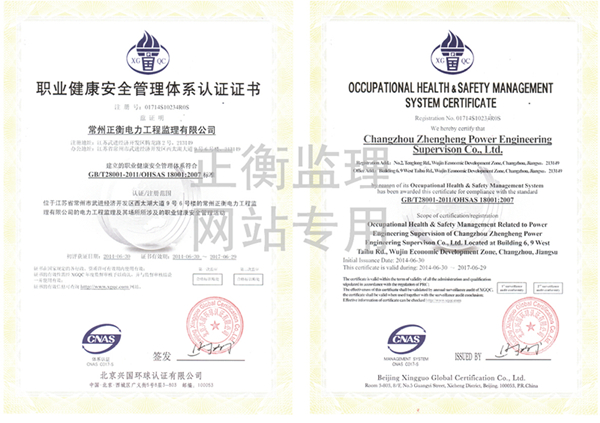 | 持证单位: 常州正衡电力工程监理有限公司 |