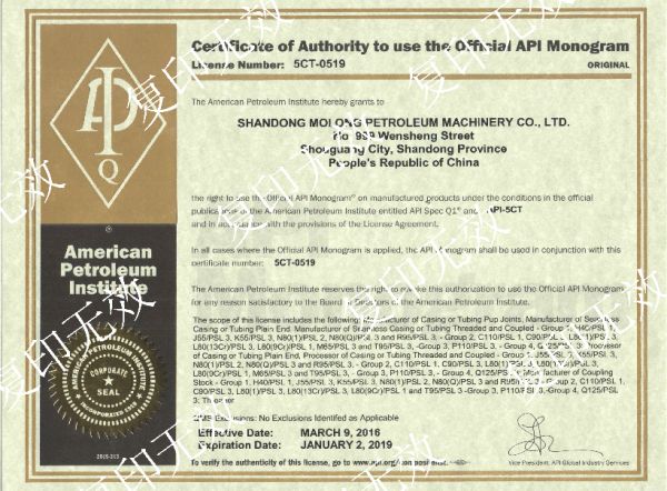 持证单位: 山东墨龙石油机械股份有限公司