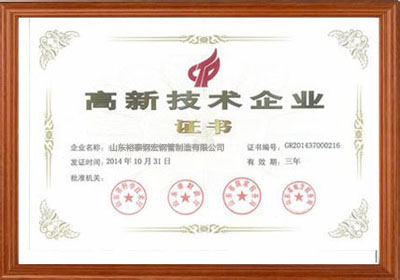 资质单位: 山东裕泰钢宏钢管制造有限公司