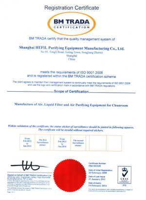 上海禾益净化设备制造有限公司BM TRADA认证证书