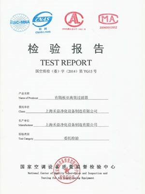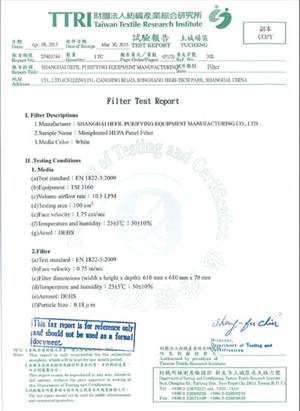 有隔板亚高效过滤器检验报告