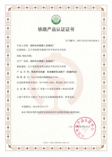 铁路产品认证证书4